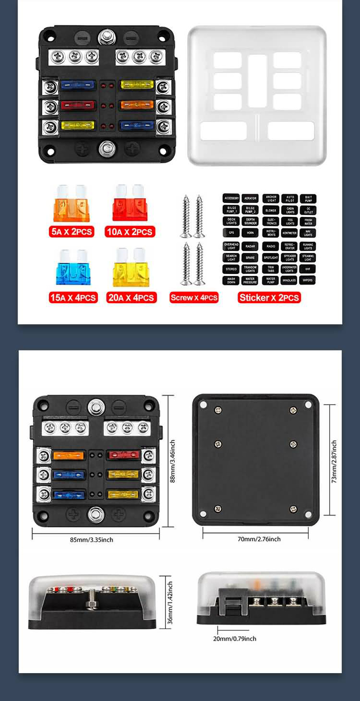 電供站 6 路 100A 帶指示燈電路分線器/保險絲盒(含保險絲)