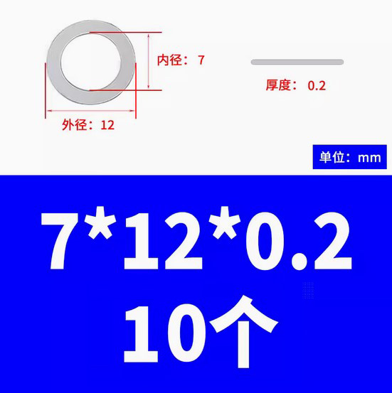 不鏽鋼 Φ7*12*0.2mm 超薄間隙調整墊片(10顆裝)