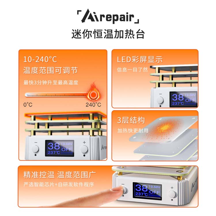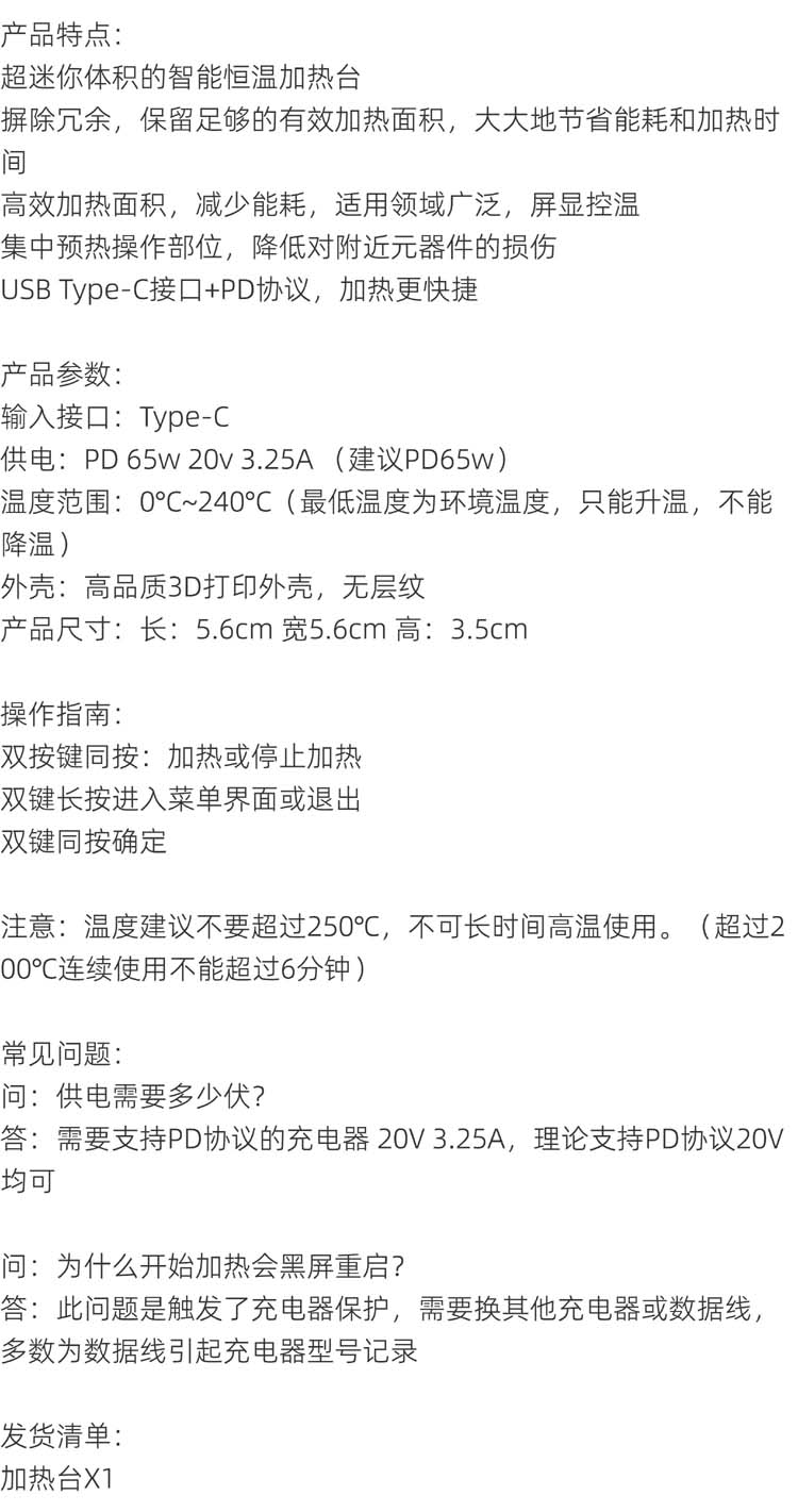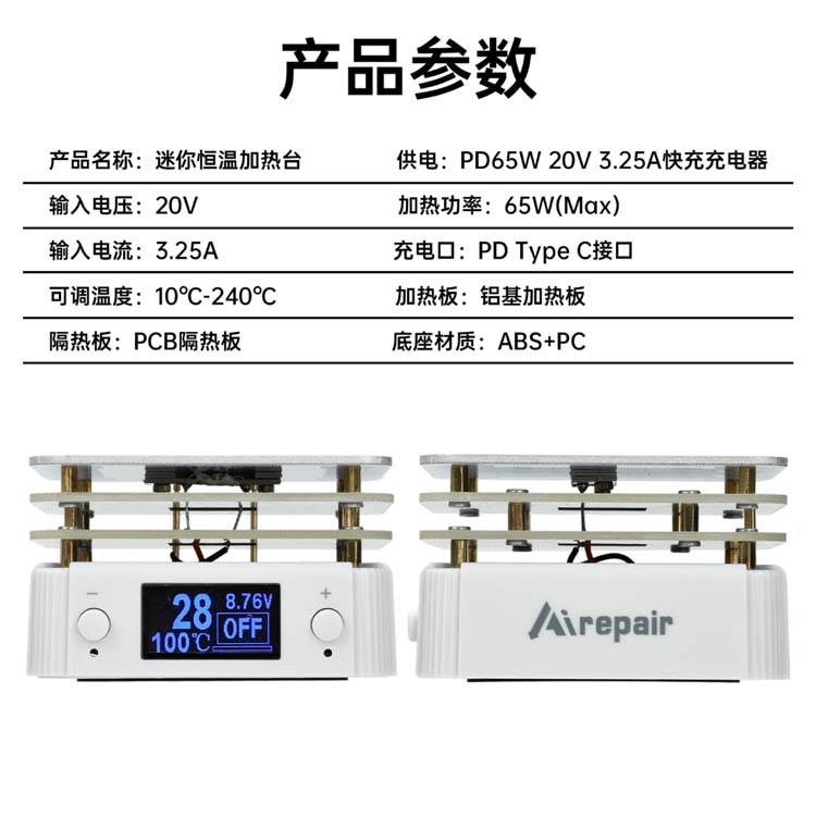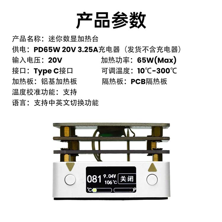 迷你數位可調式 PD65W PCB SMT 迷你恆溫預/加熱台