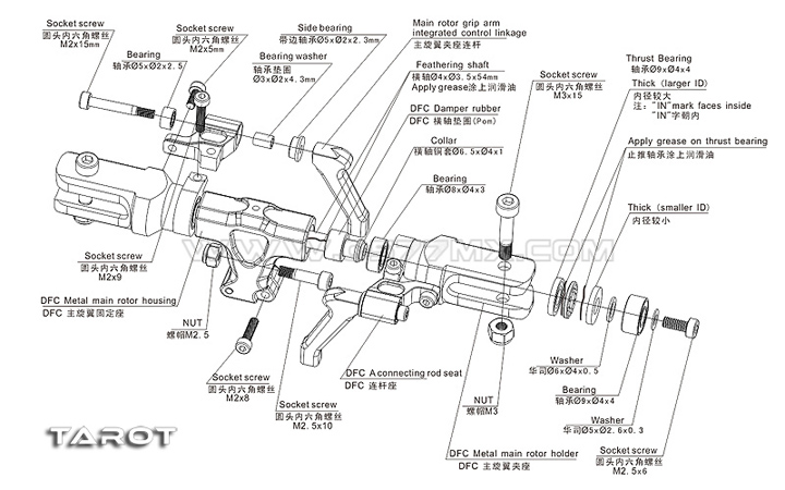適用於TAROT450 DFC(GT45162/GT48015)等DFC旋翼頭改裝。