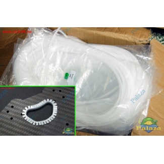 先將護套一端套於出線孔上,經繞一圈之後,在連接處量適 用長度剪斷,利用張力頂緊,即可牢牢固定。用途:
