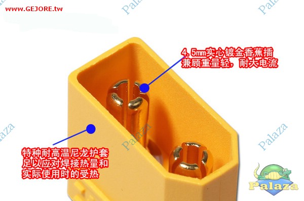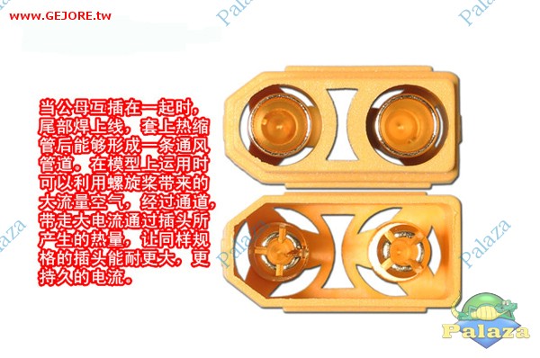 ● 耐電流90A(持續)、120A(峰值),適合需要耐電流比XT60插頭大,但是又需要插頭重量輕和體積比較小的場合。