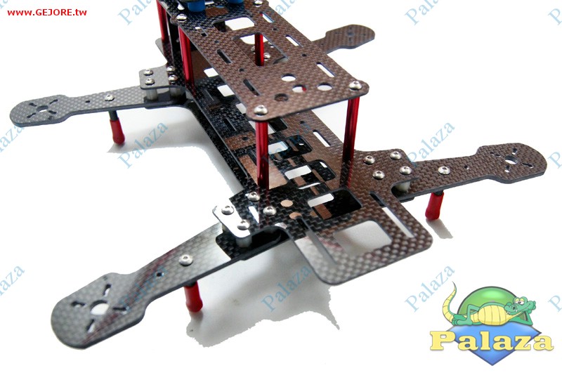此機架,軸距為250MM,穿越機架設計,您可依需求搭配較輕的尼龍柱或選擇強化的鋁合金柱連接,既保證了強度,又能有效減少震動。