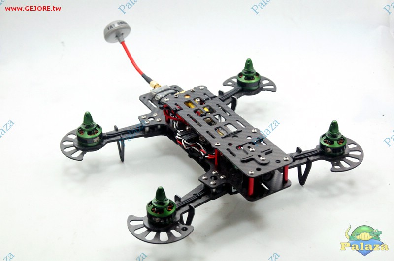 本機採用 3k 碳纖板製作,搭配 5"。 槳,軸距為 250mm,超低機身設計、主板採用 2mm 碳纖板,具有馬達保護!!
