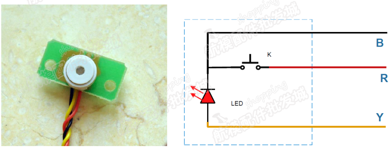 E:熱火頭,黑色線接發動機外殼,紅色線接熱火頭觸發按鈕