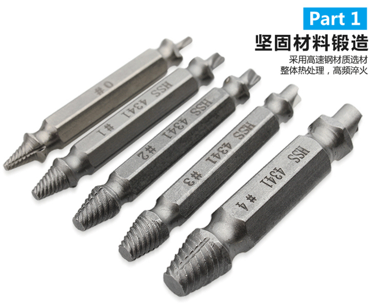 這用法很簡單,取出器有兩頭,一頭是鑽尾,一頭是反牙螺旋錐頭