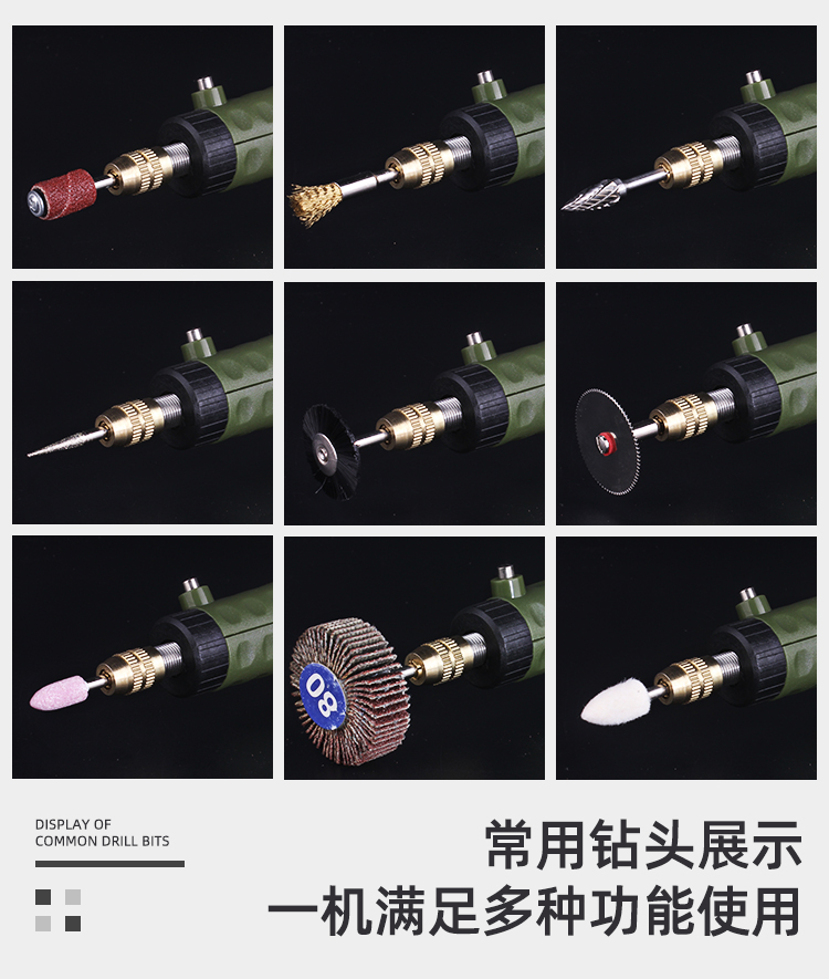 GR5802-02 這組電磨可以支援 交流電 110v/220v,經過變壓器轉成 36V 絕對夠力,絕對好用!! 附贈配件如上圖,我不知道116件怎麼計算,可能砂紙片一片也算一件,總之您收到就是如上圖所有配件!!