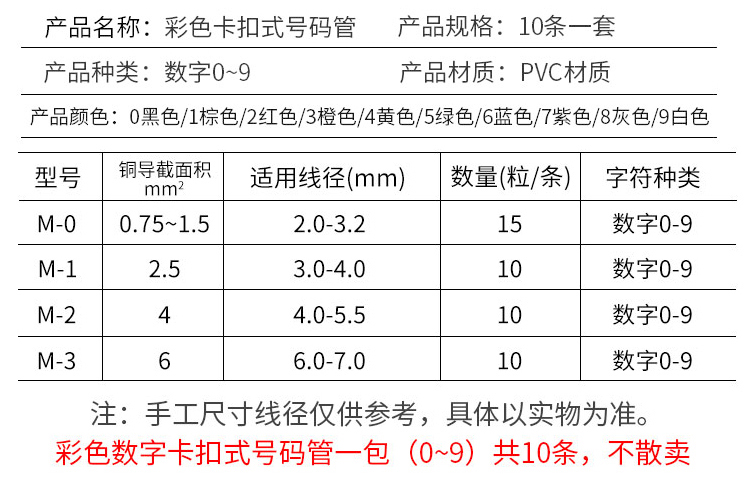 * 標記材料有彈性, 可適應一定線徑範圍使用。