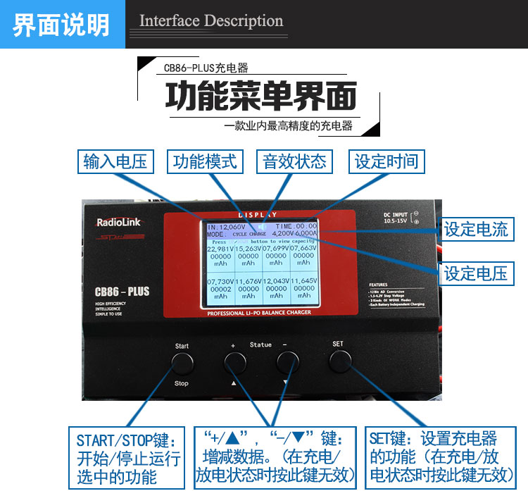 A:CB86 PLUS 都是可以設定截止電壓的,您高興也可以設 3.71v 或 3.98v 為截止電壓,還可以設自動模式,電池一插上,不用按